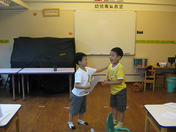 在學校教書也有六、七年的時間,接觸的大多是二年級以上的孩子,說得聽、教得懂,這次在文化附幼擔任助教,這樣直接面對一群幼稚園、小一的學生,還真是大姑娘上花轎─頭一遭。有趣的是,中間還夾了兩位六年級的哥哥、大姐姐。
