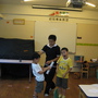這麼小的孩子學習相聲和竹板,會是什麼樣的情形呢?會不會有鴨子聽雷的情形出現?邊拍照邊協助的我,在心中納悶許久。所幸,在老師步驟明確的教導下,幾乎每位學生都能正確掌握竹板的使用方法,但是仍有少數學生因為小肌肉的發展還不是很協調,而造成挫折情形。不過還好,經過幾天的練習,這樣的狀況也改善很多,而且學生們只要一拿起竹板,就異常興奮,努力練習的程度,出乎我意料之外。